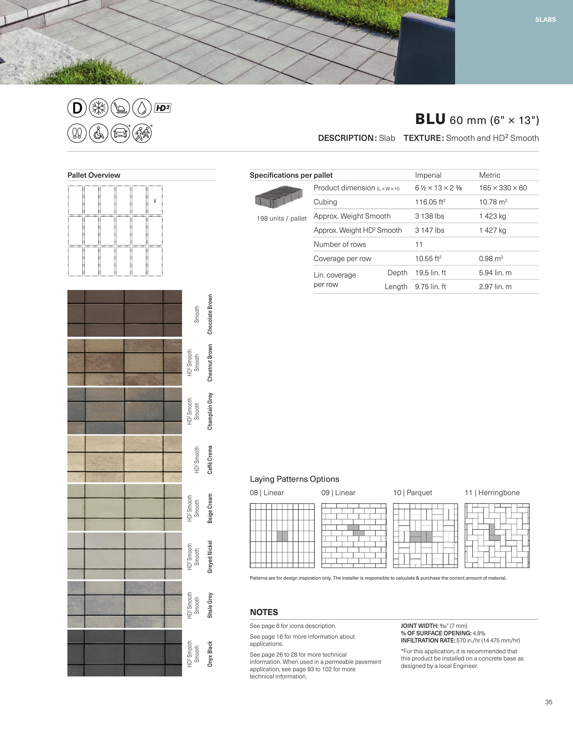Esta piedra contemporánea para patio es una opción muy popular para patios modernos. Las piedras Blu Smooth están disponibles en un sistema de varias piezas para terrazas de piscinas, caminos y patios. Disponible en diferentes dimensiones para dar rienda suelta a la creatividad en los patrones de pavimento, la colección Blu 60 es una de las más reconocidas y populares de Techo-Bloc. Su textura suave es perfecta para cualquier diseño de paisaje moderno. Elija entre una amplia gama de colores para sus zonas peatonales, como caminos, bordes de piscinas y patios. Descubra la textura suave HD2 para una superficie compacta y sin poros. También está disponible en versión para adoquines.