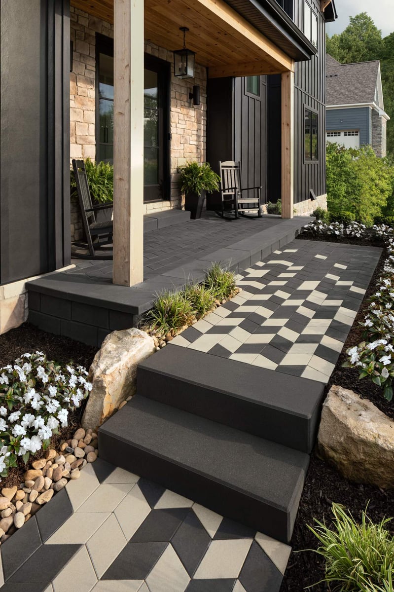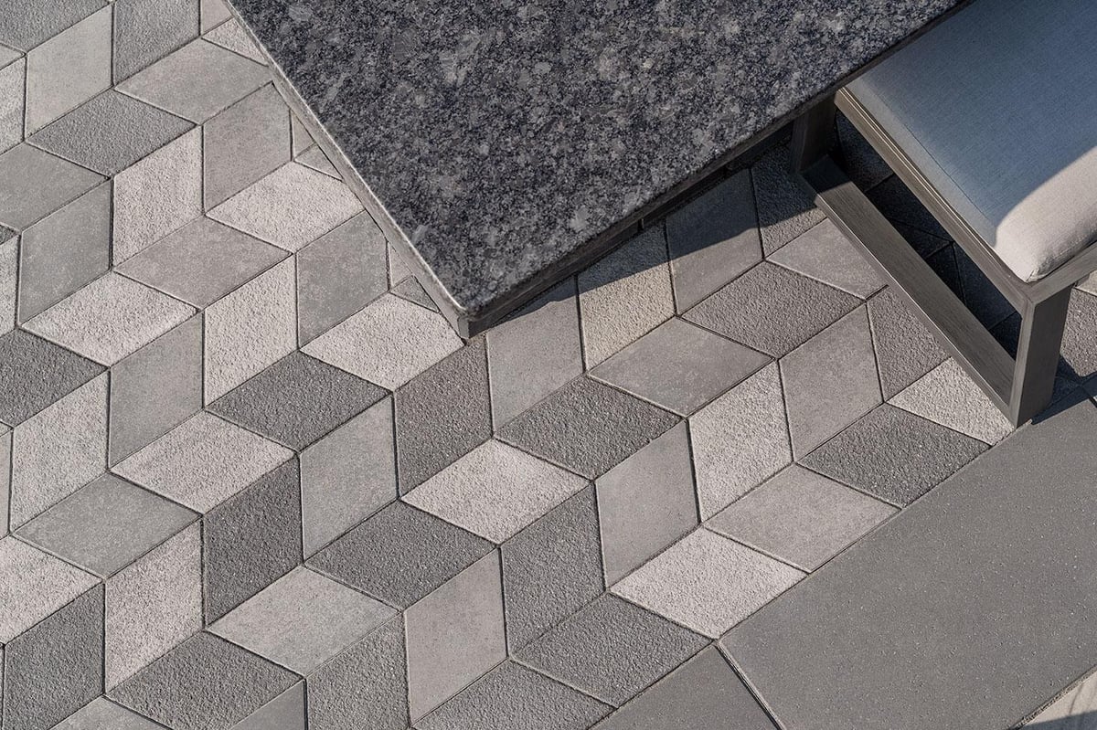 El adoquín Diamond aporta un efecto caleidoscopio al diseño paisajístico moderno. Inspirado en los patrones geométricos que actualmente dan forma al diseño interior contemporáneo, el adoquín Diamond lleva este estilo al exterior. La forma de diamante combinada con las opciones de color y textura de este adoquín lo convierten en uno de los adoquines de estilo moderno más creativos y flexibles para plazas, parques, aceras y museos. Resistente a la sal descongelante y construido con una altura de 100 mm para uso comercial, construya pisos para exteriores inspirados en tableros de ajedrez, zigzags, ilusiones cúbicas y más. También se puede utilizar para uso residencial.