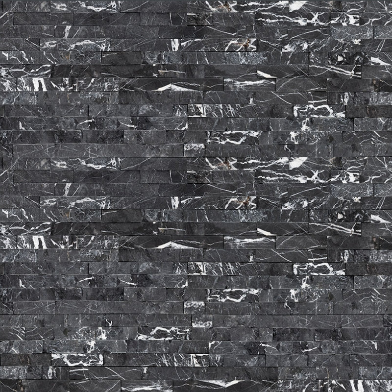 La piedra apilada Marquina Nero aporta un elemento visual distintivo y dinámico a cualquier estancia. Los tonos de mármol gris y negro se combinan a la perfección en el fondo, mientras que las vetas blancas realzan la textura de los paneles y aportan movimiento. El acabado de cara dividida es natural y se adapta a aplicaciones interiores y exteriores. Desde lo clásico hasta lo contemporáneo, este panel de largueros se adapta a cualquier estilo arquitectónico. Úselo para crear salpicaderos, paredes decorativas, marcos de chimenea y mucho más, sin igual. Disponemos de esquinas a juego para rematar sus proyectos.