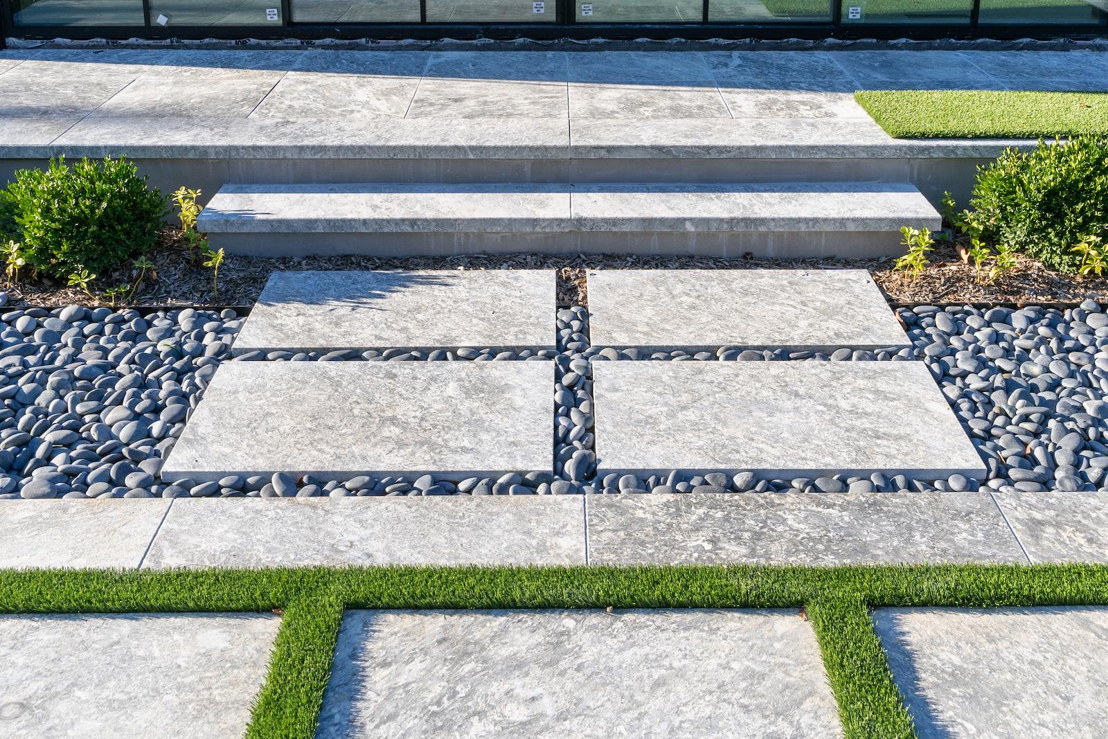 Los adoquines de mármol Pietra Grey de 24×36, arenados y lavados al ácido, presentan vetas blancas menos anchas y manchas doradas en la superficie. Esta piedra natural de superficie única es popular entre los proveedores que trabajan exclusivamente con adoquines de mármol de primera calidad. Ofrecen una excelente combinación de apariencia y estética que es difícil de ignorar. Puede añadir un toque de lujo a sus exteriores sin esfuerzo. Consígalos en acabado arenado o lavado al ácido, que le darán una sutil textura al tacto.