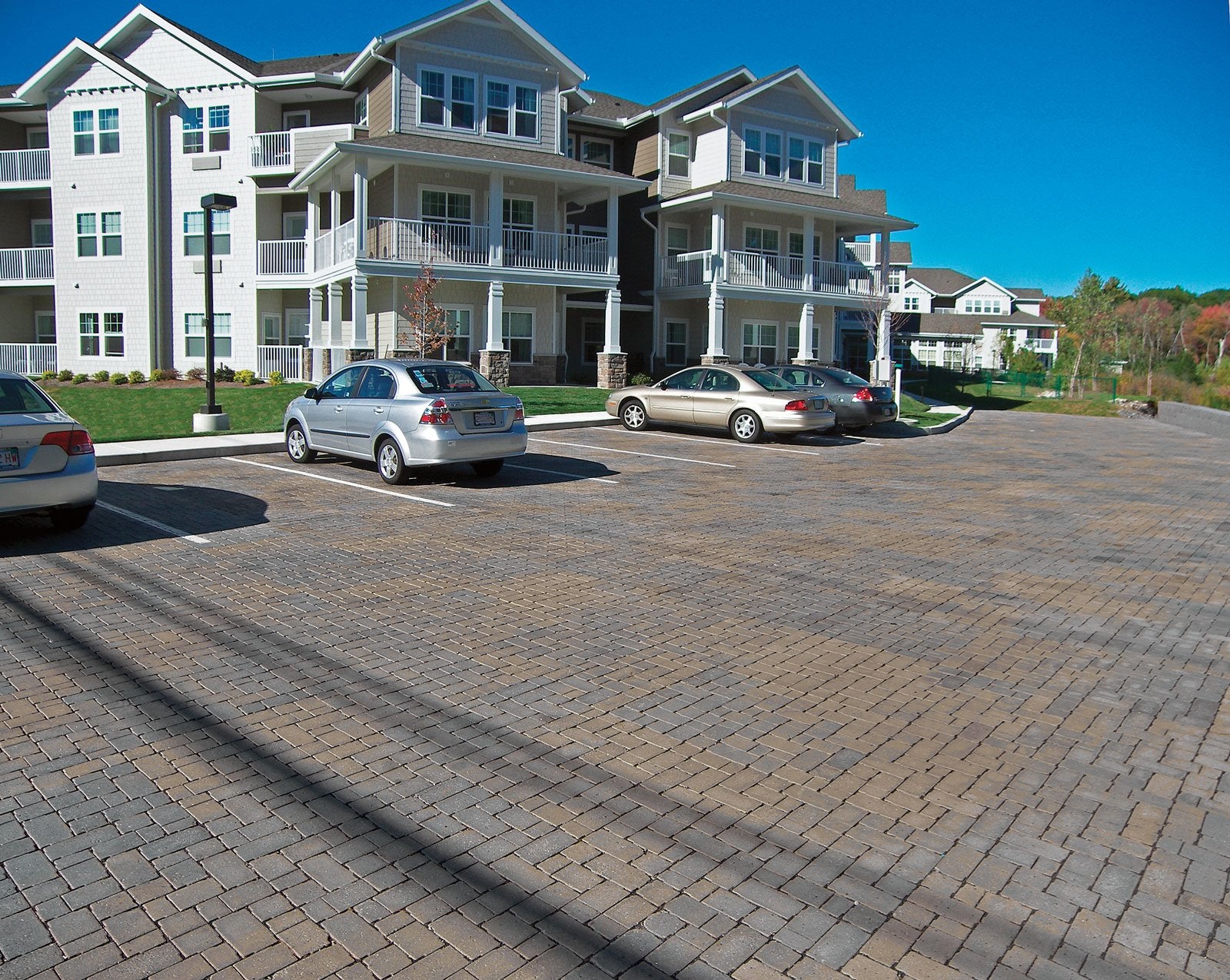Aqua-Bric 8 offers the pedestrian-friendly features of Aqua-Bric in a larger and thicker size that is suited for heavy-duty traffic loads found in parking lots, entrance drives and low-speed roadways and streets. Aqua-Bric 8 is manufactured in three popular color blends in a herringbone layout designed to take advantage of the economy of mechanical installation. The patented drainage openings in the corners allow easier access for sweeping and cleaning to maintain drainage and infiltration.