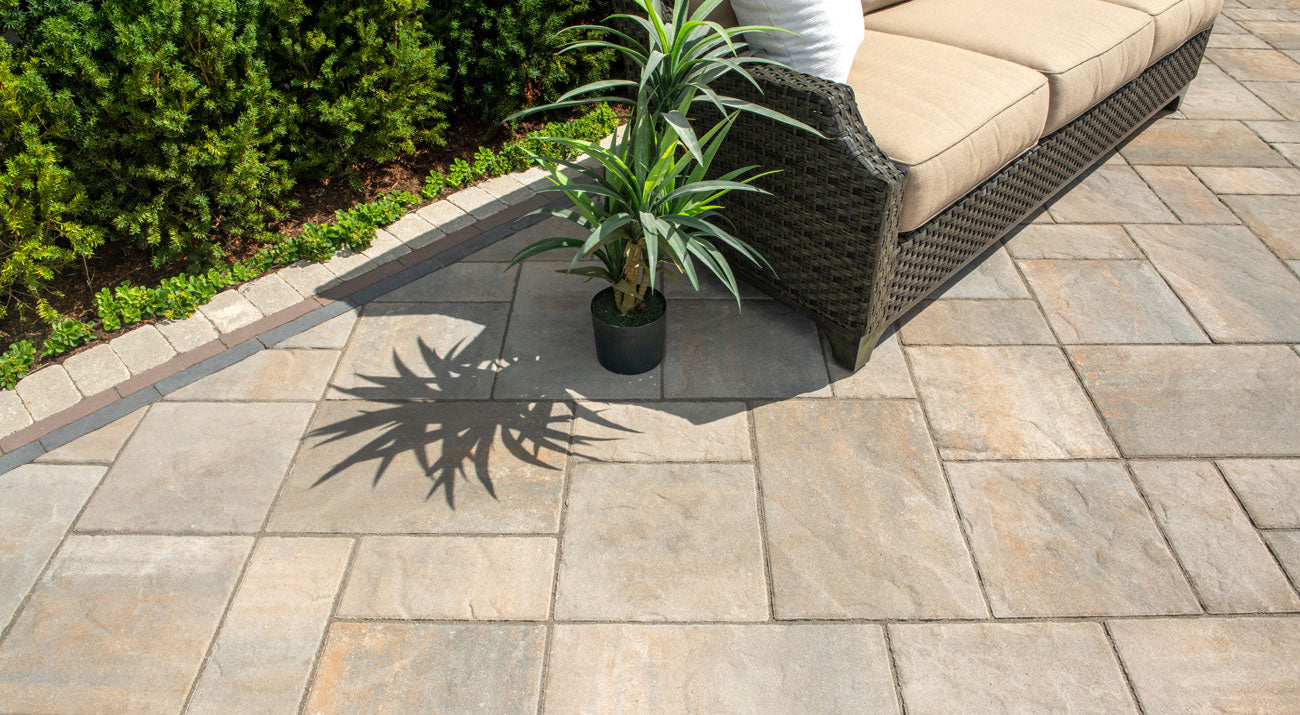 Inspired by natural cut flagstone, the blended colors and distinctive texture of Beacon Hill Flagstone has a relaxed look and feel, with all the benefits of Enduracolor technology. The subtle surface texture is comfortable to walk on in bare feet, but appears more dramatic in the light of sunrise and sunset. Sold in a random bundle of three relatively large sizes, Beacon Hill Flagstone can be laid in a number of patterns for a more, or less, random appearance. A larger, XL rectangle is now available in most regions, to be used alone or in combination with the traditional random bundle. Together, these characteristics have made Beacon Hill Flagstone one of our most popular pavers for patios, pool surrounds and walkways.