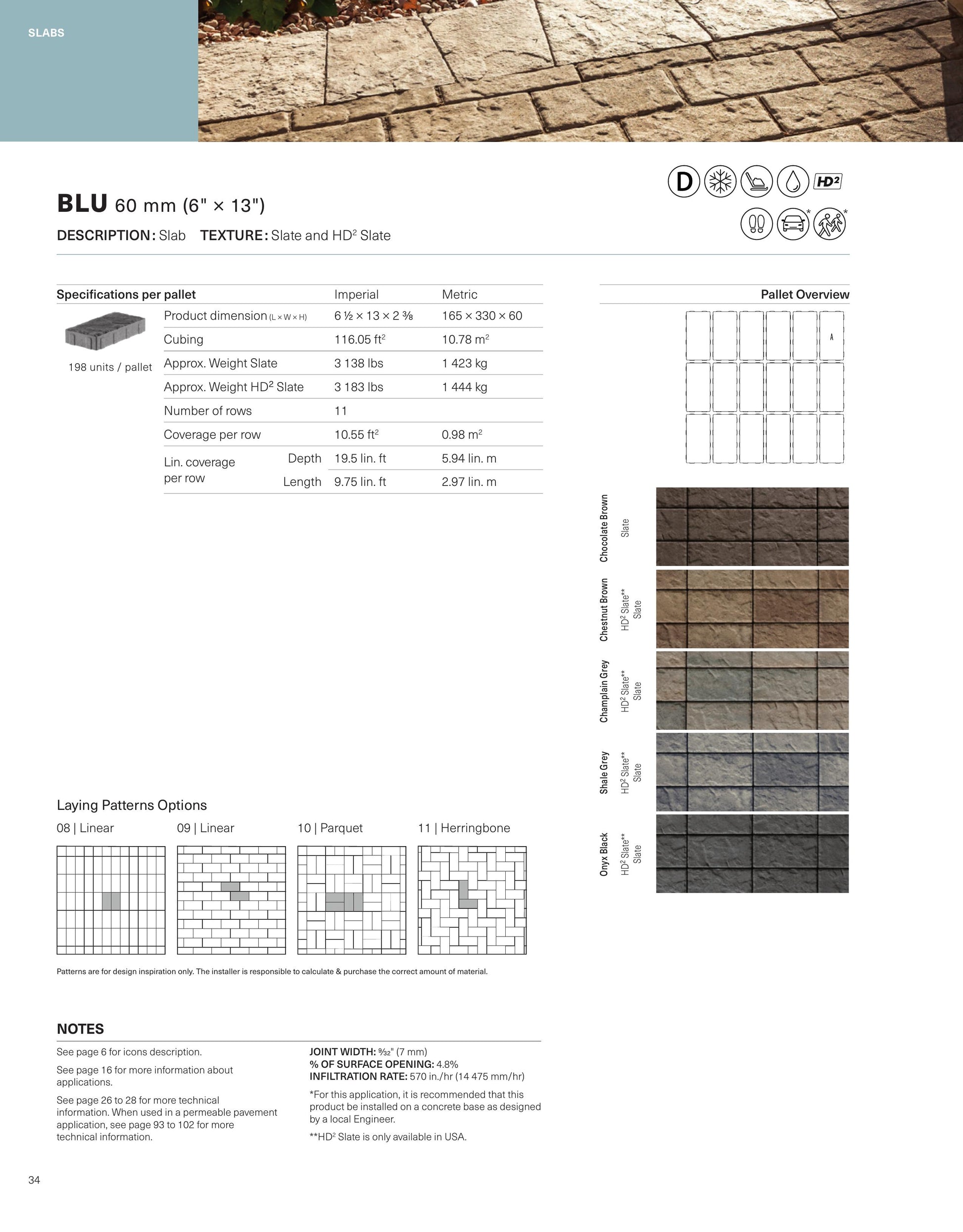 The best-selling Blu slate patio slab was inspired by natural slate stone. This traditional patio stone comes in multiple sizes for your backyard pool decks, patios & walkways. The same lines and rugged texture as Techo-Bloc’s thicker Blu paver, the same opulent colors and traditional look, Blu 60 Slate slab is the choice for pedestrian areas such as on walkways and patios.