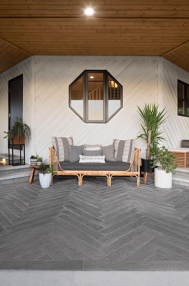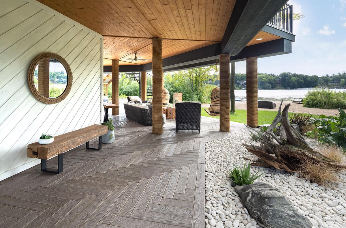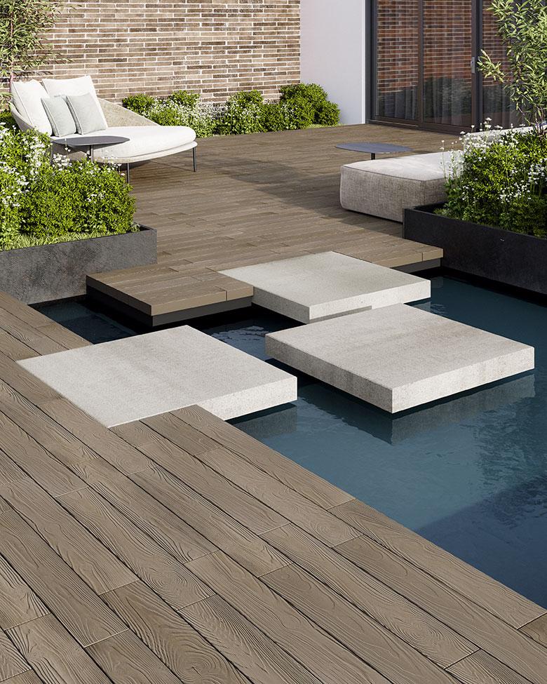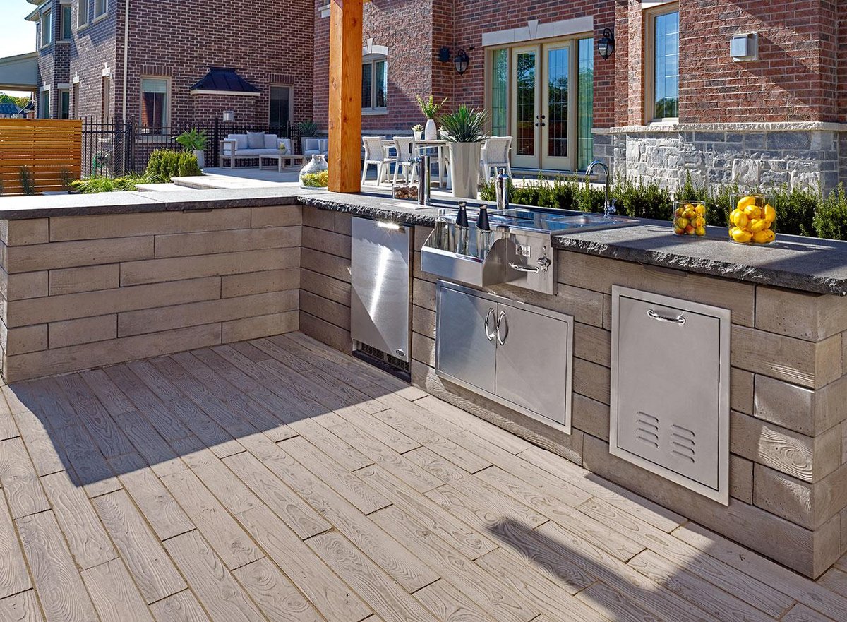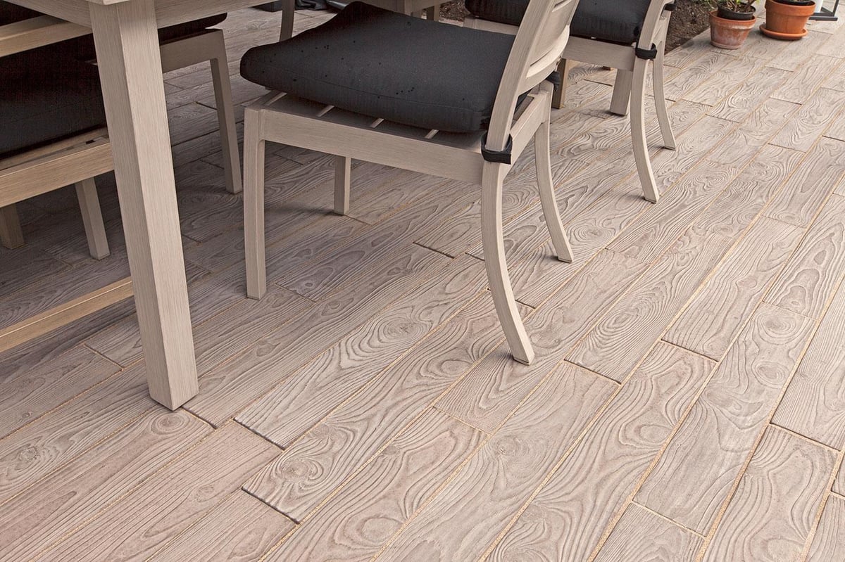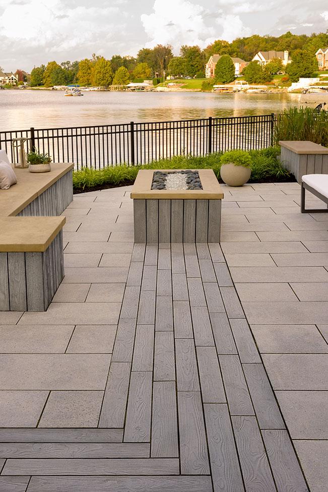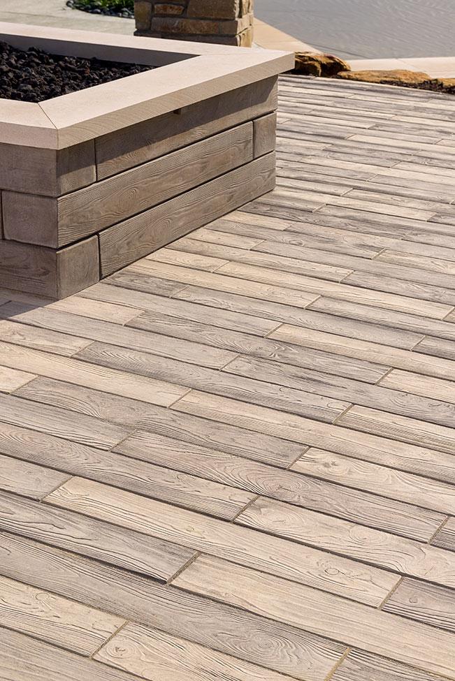 The look of hardwood flooring is now available outdoors with this wood look-a-like patio slab made of concrete. Borealis is available in two widths and three alluring colors. Borealis looks and feels like wood planks and most importantly, is maintenance-free. That means no deck staining, wood-treating or wood-rotting, ever. Boasting Techo-Bloc's latest Klean-Bloc technology, this slab benefits from an added protection against everyday wear and tear such as stains, scratches and color fading. Whether it’s your poolside, front porch, backyard deck, or patio, Borealis brings the appealing esthetics of natural wood to your backyard in a weather-proof, maintenance-free way.