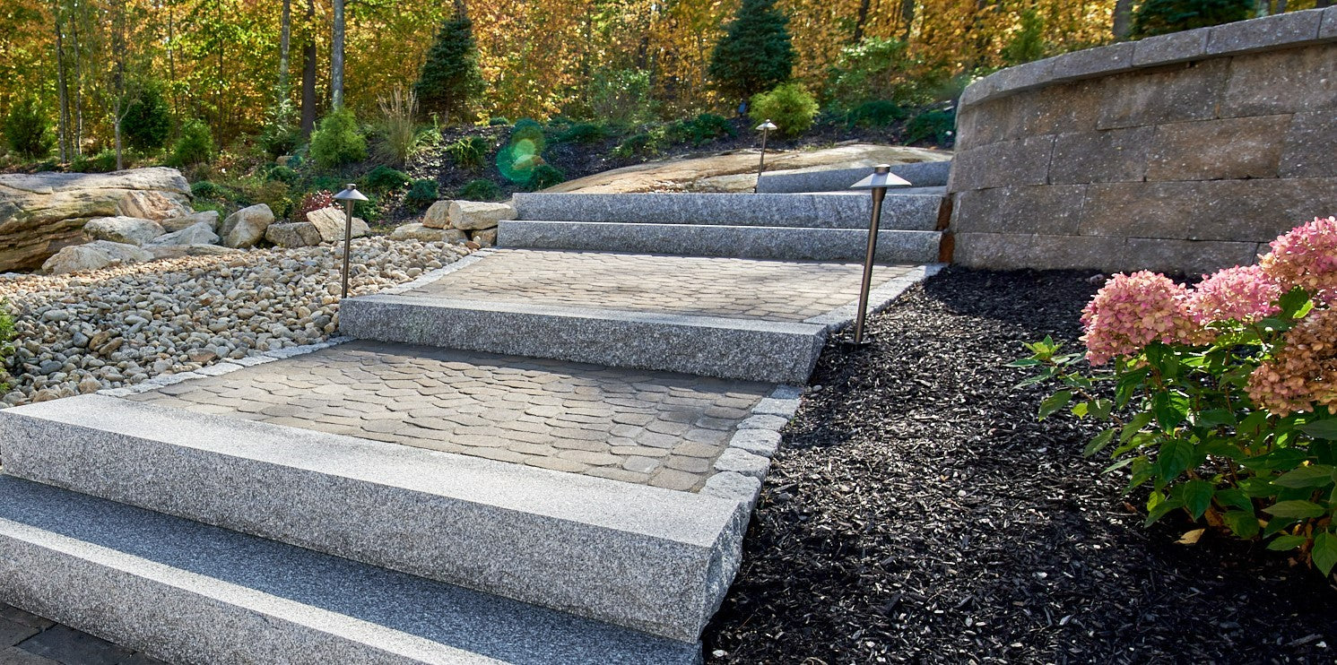 Stones from New England’s streams and brooks gave us inspiration when creating BrookStone, our multi-size paver featuring 11 different shapes and sizes. Its irregular shape and size make it perfect for accent areas, bands, and so much more. The units can be used alone, or as an inset, integrating with our Portsmouth Cobble™, Andover Collection™ and 5511™ pavers to design striking banding or accents and colors can be mixed and matched to create unique blends. When used with open-graded stone, BrookStone’s variable void space acts as a permeable pavement to reduce run-off from rain and snow.