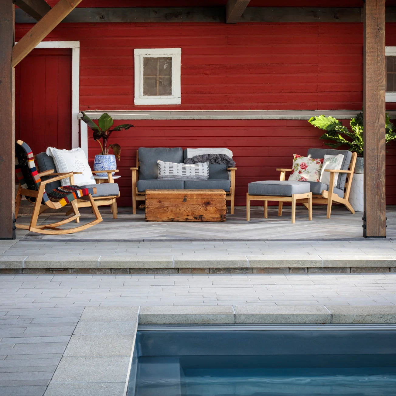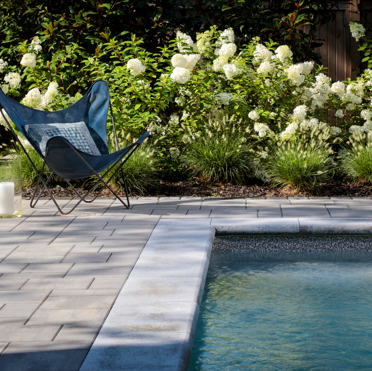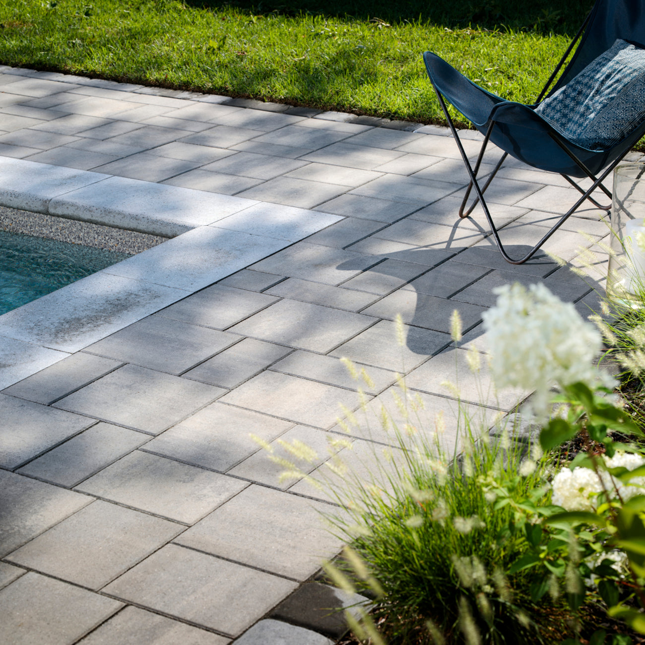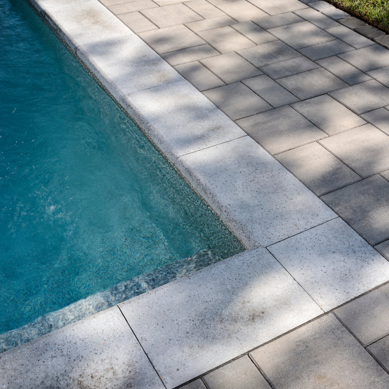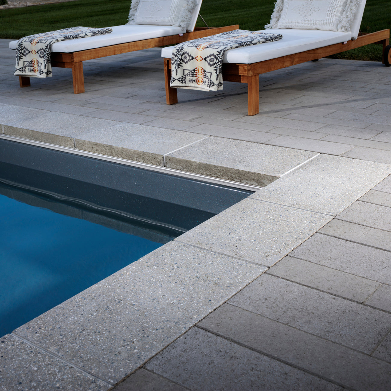 A large coping specifically designed for rectangular pools. This rounded, smooth-finish module creates a contemporary and trendy look.