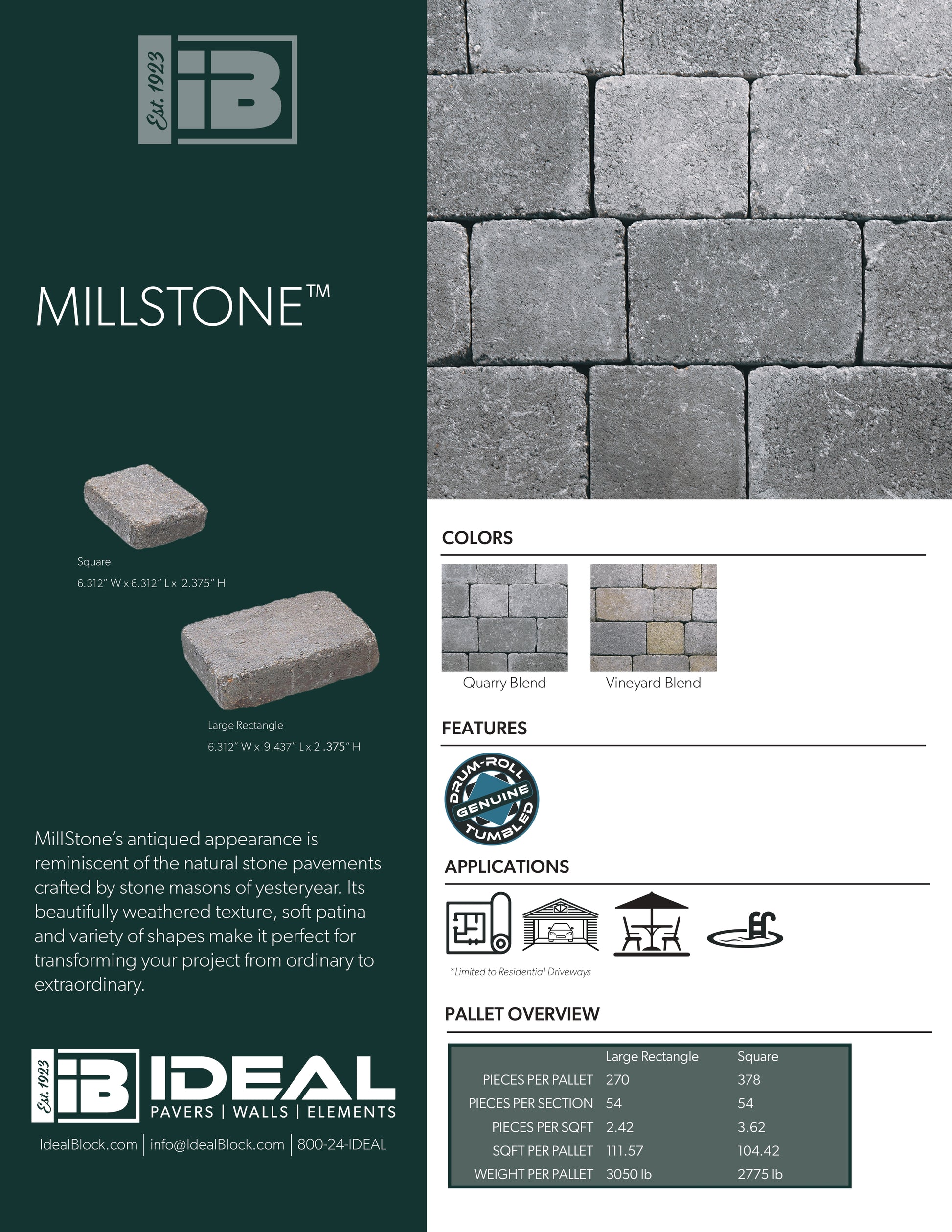 MillStone’s antiqued appearance is reminiscent of the natural stone pavements crafted by stone masons of yesteryear. Its beautifully weathered texture, soft patina and variety of shapes make it perfect for transforming your project from ordinary to extraordinary.