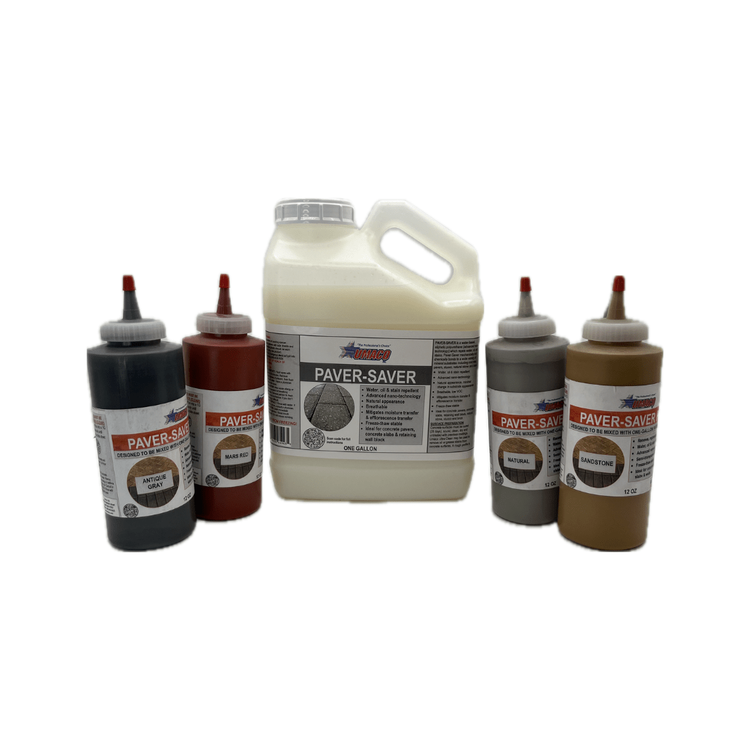 Paver-Saver Plus renews, rejuvenates & decorates faded concrete, concrete pavers, retaining wall block, stucco, brick & natural stone. It can also be used to decorate & protect new concrete surfaces. Paver-Saver Plus is a semi-transparent, penetrating, concrete stain & protective repellent which provides an attractive yet natural looking finish when applied over horizontal & vertical concrete surfaces. Paver-Saver Plus (12 oz bottle) must be mixed with a 1G bottle of Paver-Saver (Clear).