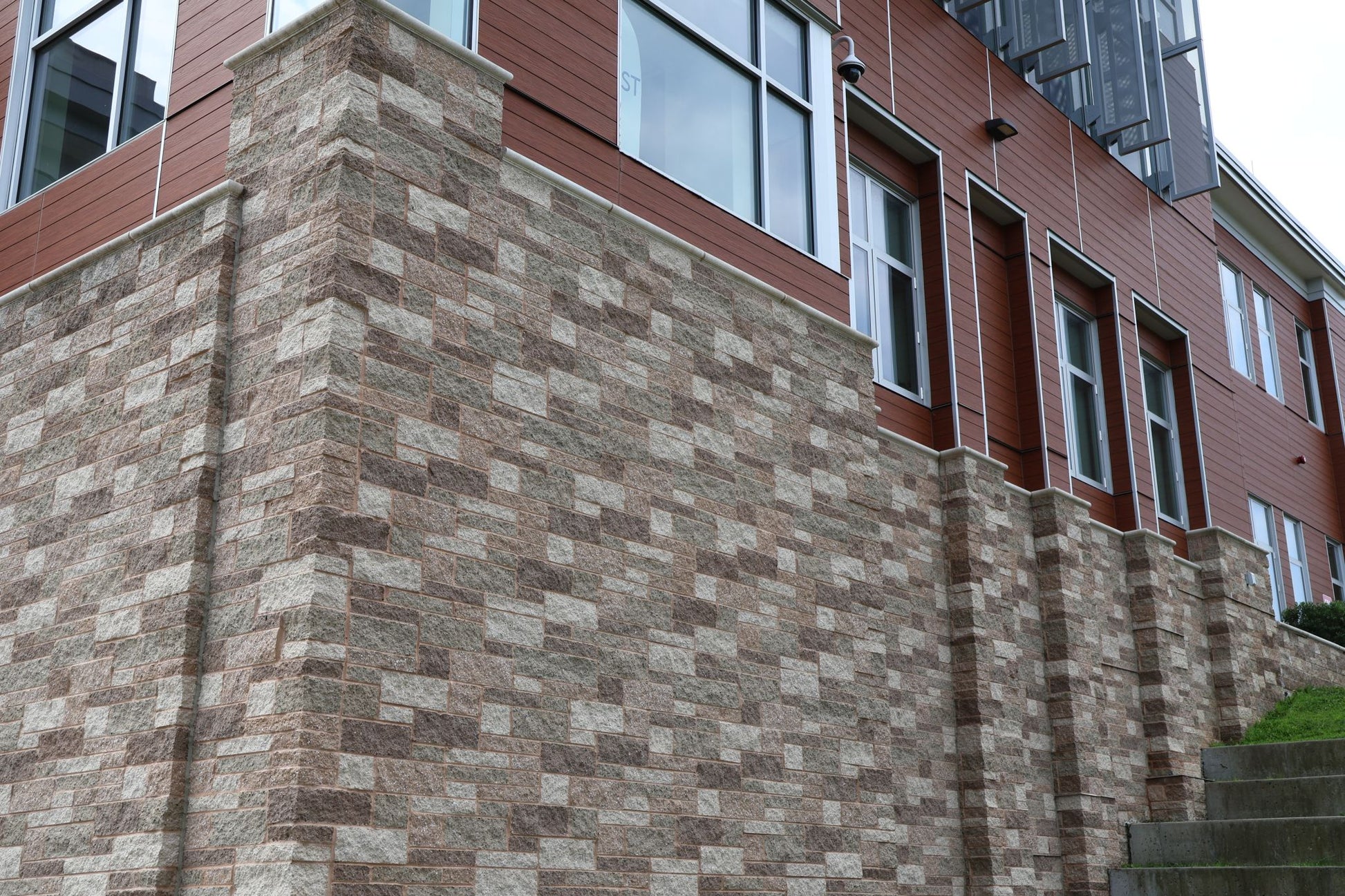 Split Face Blocks are fractured using a splitter exposing natural aggregates and creating a natural “rock-like” surface. They can be used for maintenance free interior and/or exterior applications.
