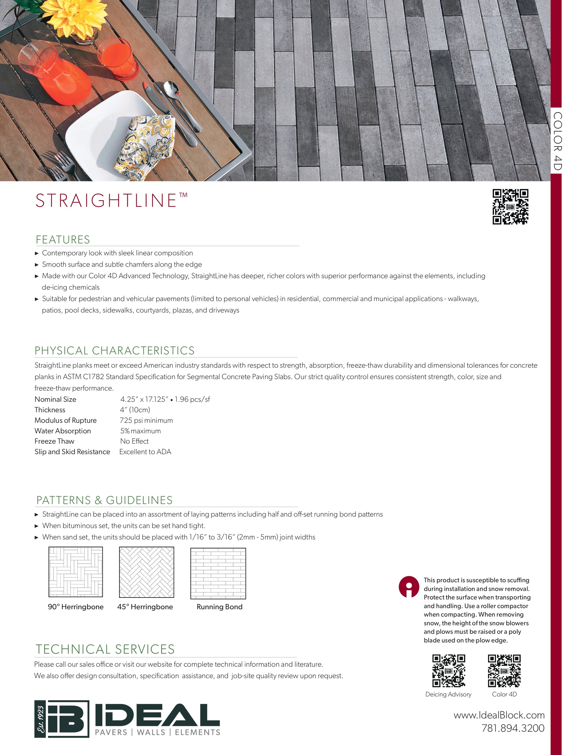 | StraightLine | 4 1/4″ x 17 1/8″ | 4″ thick | 1.96 pcs/sf | 67.35 sf/cube |