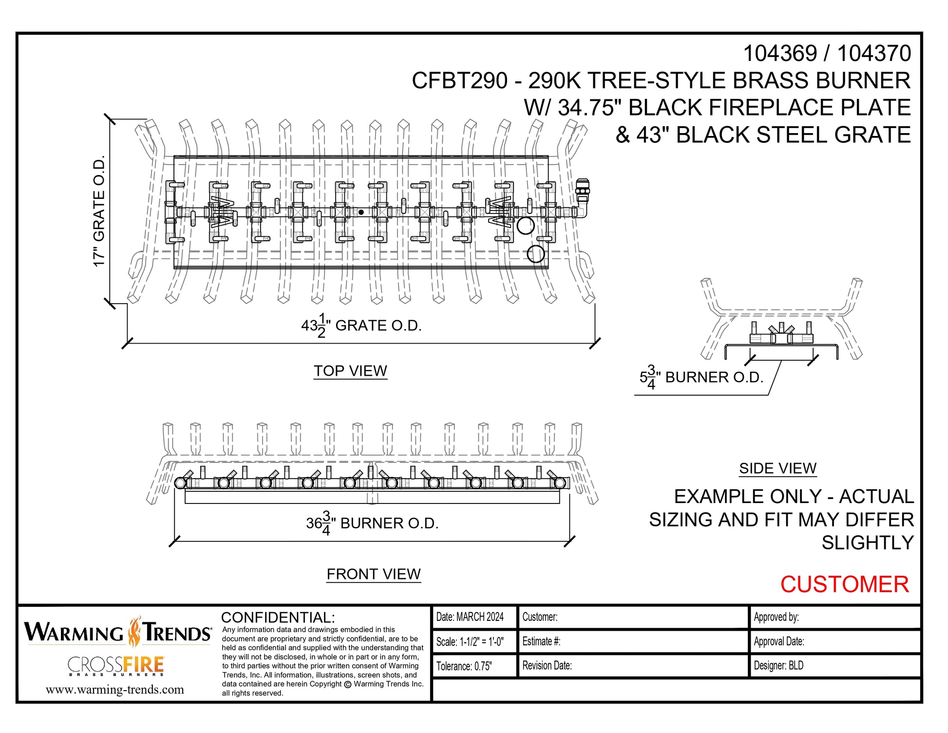 - 43.5" W x 17" D Grate