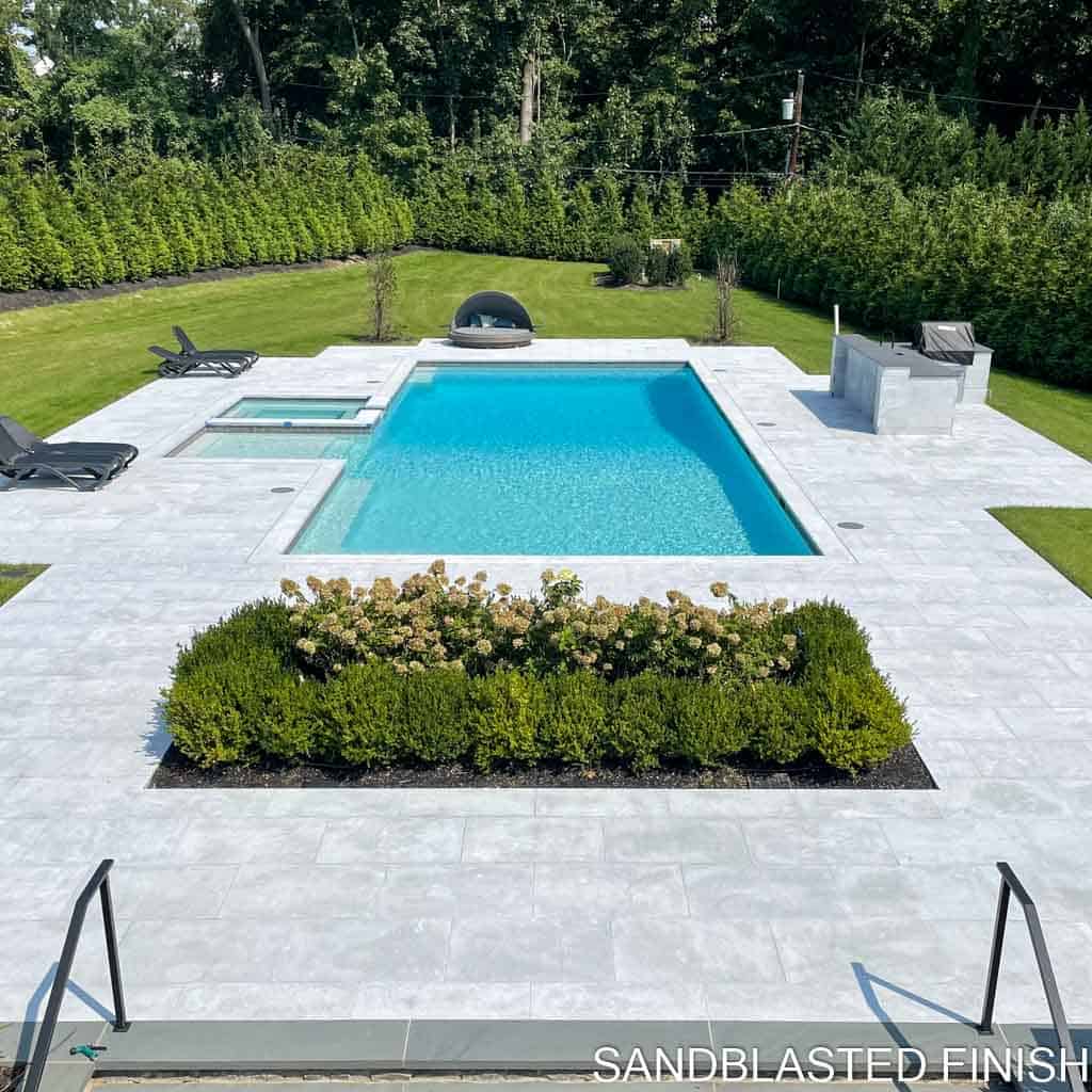 Enhance the beauty of your outdoor space with the elegance of Luxe Blue Marble Pavers Sandblasted. These stunning Luxe Blue Marble Pavers feature a beautiful blue-gray marble color with a subtle sandblasted finish. Create a unique and sophisticated look be it slip-resistant pool decks or durable pathways. These Sandblasted Marble Pavers offer timeless beauty and low maintenance requirements. This is an excellent choice for those seeking a luxurious and functional outdoor living area. Add a touch of refinement to your home’s exterior design with these exquisite pavers.