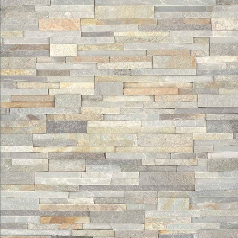 Esta Pedra Empilhada Malibu Honey combina tons dourados, cinzas e cremes para criar uma paleta de sonho de pedras de quartzito de face dividida empilhadas. O padrão aleatório de cores cria movimento em todas as peças, combinando perfeitamente com o seu design. Use esta pedra empilhada como uma parede de destaque ou como um revestimento para backsplash para criar um espaço verdadeiramente único e bonito na sua cozinha ou banheiro e dar ao seu espaço o toque de interesse que ele tanto precisava.